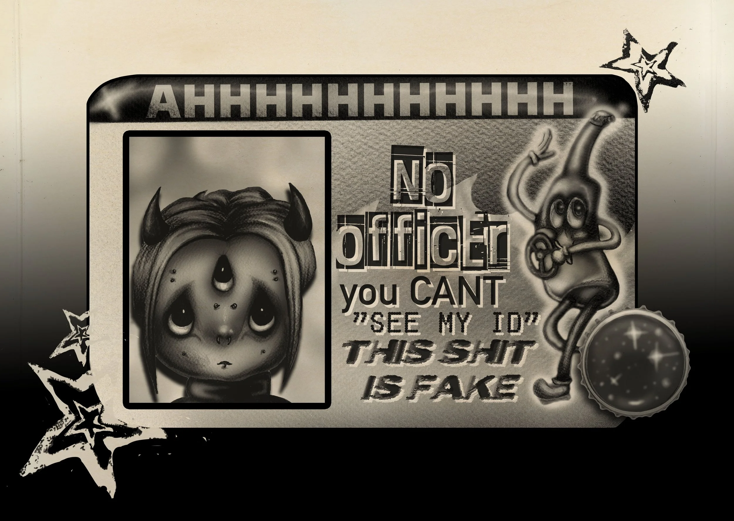 Left: No Officer, Acrylic, Pastel, Airbrush, 2025
